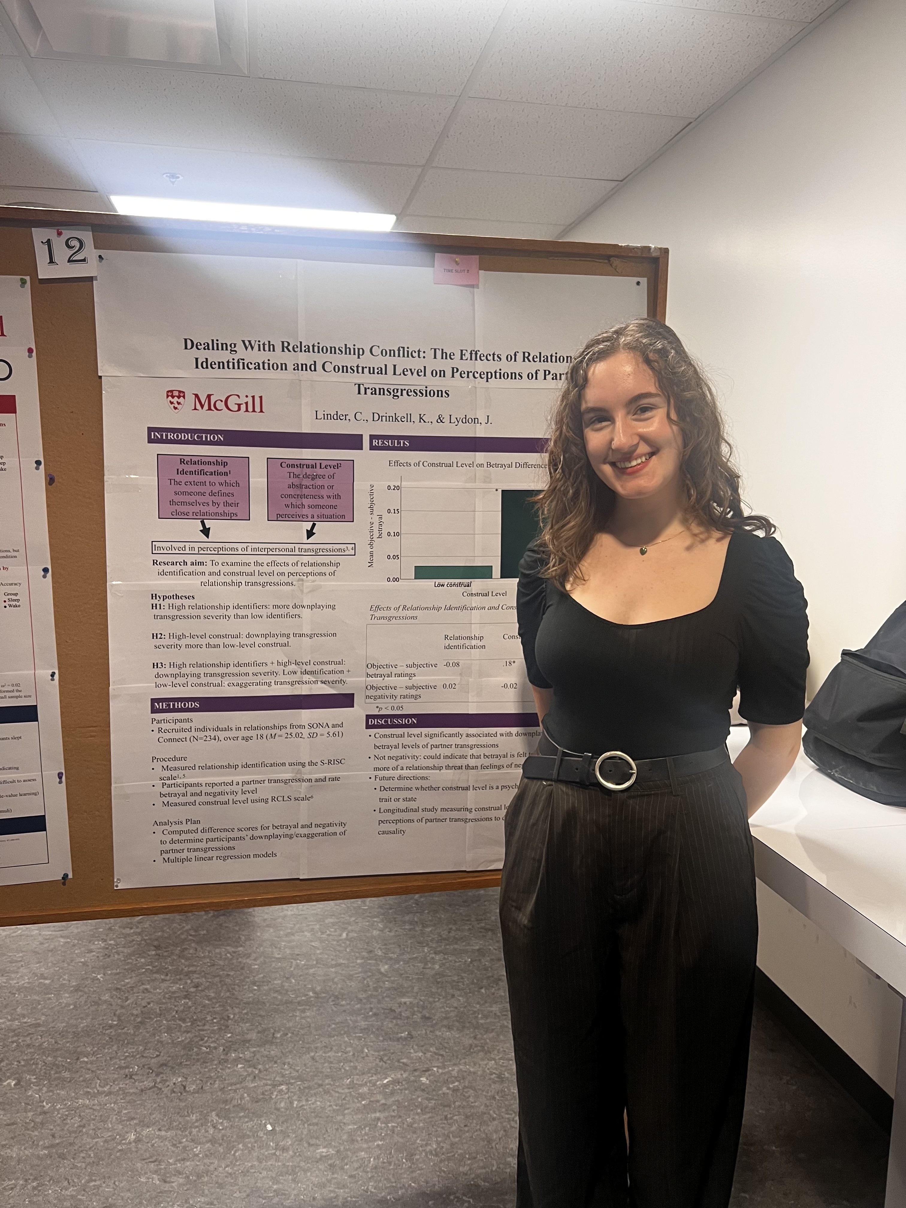 Our honours student Clara Linder presented her work on relationship identification and construal level on perceptions of partner transgressions at the 2025 Psychology Undergraduate Poster Day.